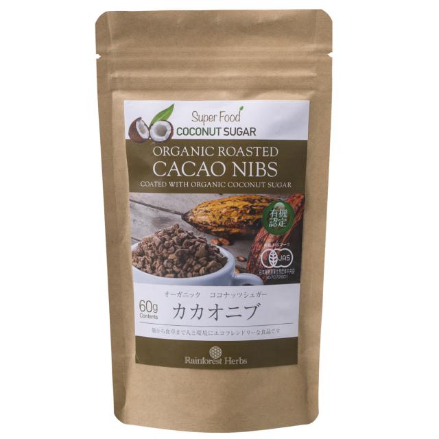 有機カカオニブ ココナッツシュガー味 60g 1袋 ペルー産 有機JASオーガニック 無添加 低糖質 低カロリーシュガーコーティング 砂糖不使用