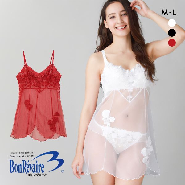 ボンレヴェール BonRevaire バラ柄チュールレース シースルー レース ミニスリップ 日本製 レディース 送料無料 メール便(7)