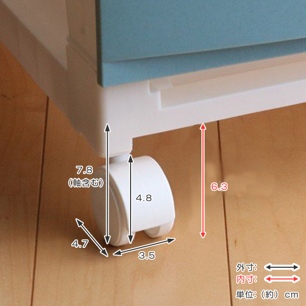 | 材質 | 【キャスター】本体:ポリプロピレン 軸:ポリプロピレン(鉄芯入り)、ナイロン樹脂 【キャスター受け】ポリプロピレン |