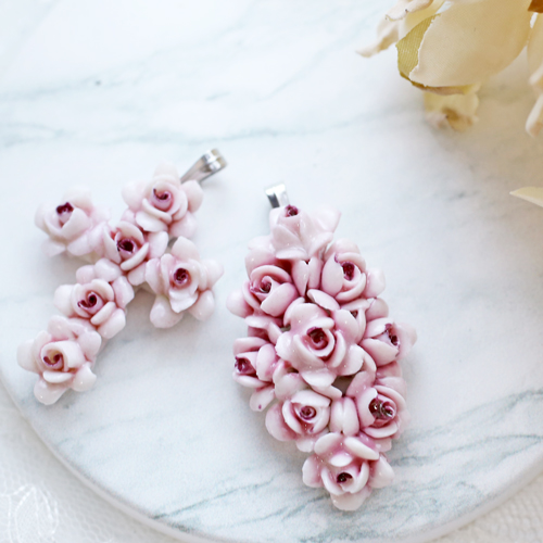 型を一切使わずに、花びら一枚一枚 丁寧に手作り、色づけされたアクセサリーは
