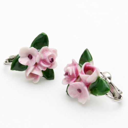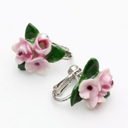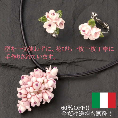 型を一切使わずに、花びら一枚一枚 丁寧に手作り、色づけされたアクセサリーは