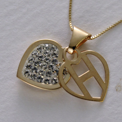 英国 G&A社 ゴールド イニシャル ペンダント クリスタル ハート H