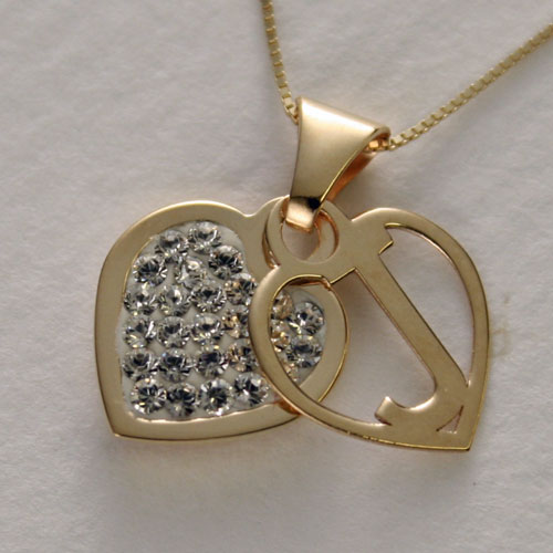 英国 G&A社 ゴールド イニシャル ペンダント クリスタル ハート J