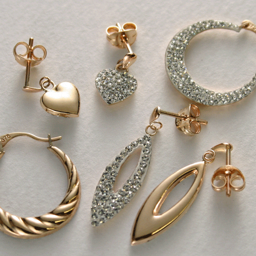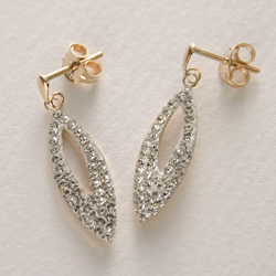 ●9金、クリスタル●留具はキャッチ式●しずく部分の大きさ約20×7mm ●総重量約1g ●タイ製(デザイン企画イギリス)