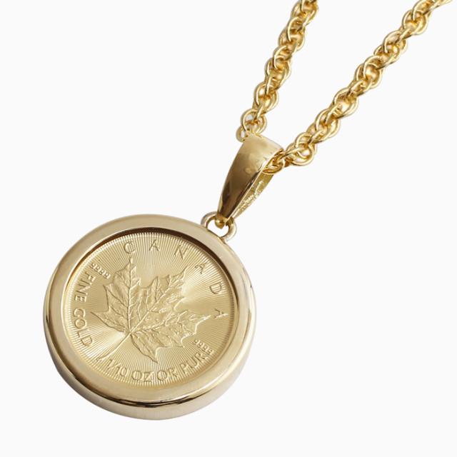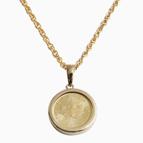 純金 K24 18金枠 メイプルリーフコイン 縄チェーン ラッピング無料