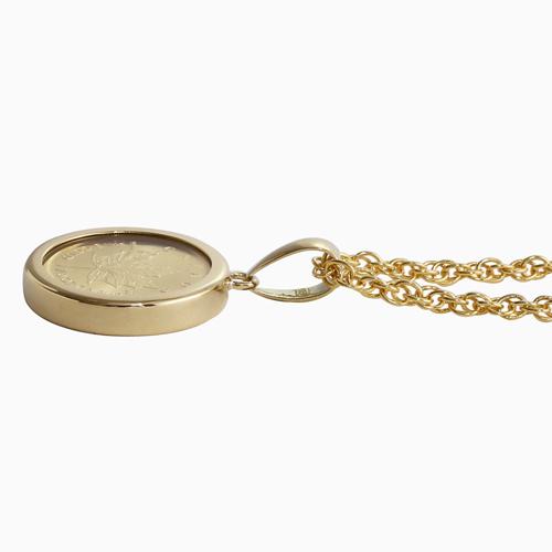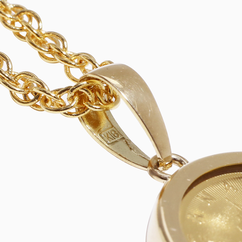 【素材】コイン24金、枠18金、両面クリスタルガラス、チェーン真ちゅう【チェーン】縄編みチェーン、長さ約50cm、留具は引輪式【枠込コインの直径】約18mm(バチカン込約28mm)、枠込厚み約3mm【総重量】約5.5g(トップ部分のみ) ■日本製(コインはカナダ製)【注意】コインの製造年はご指定いただけません。また、相場により毎日、金貨の価格が変動しますので購入後の返品はお断りしておりますので、ご了承ください。