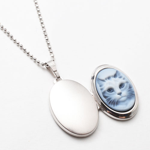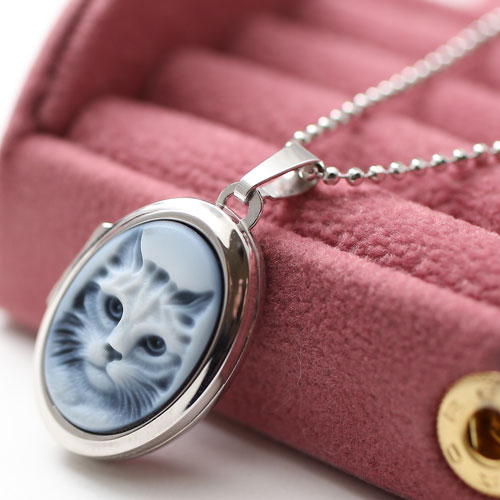 高貴な猫の彫刻を施したストーンカメオが付いたロケットペンダント。ドイツ製ならではの作りの良さとハイセンス、他ではなかなか見つかりません!!