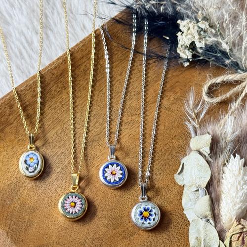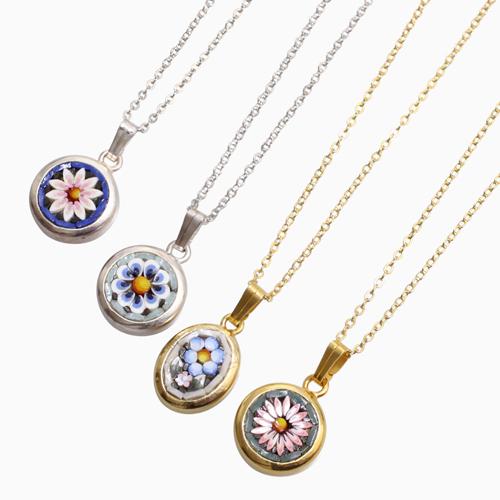 ◆Filippini & Paoletti◆イタリア製 ITALY フィレンツェ 色柄形おまかせ ベネチアンガラス ペンダント ネックレス 真鍮 アズキチェーン付き アクセサリー フラワー 花モチーフ 可愛い 小さめ 女性 レディース プレゼント クリックポスト便発送
