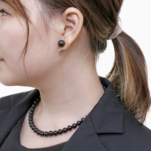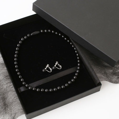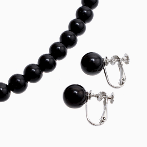 ジェットネックレス イヤリング セット 全長42cm 8mm珠 10mm珠 高品質天然ジェット ラッピング無料