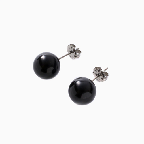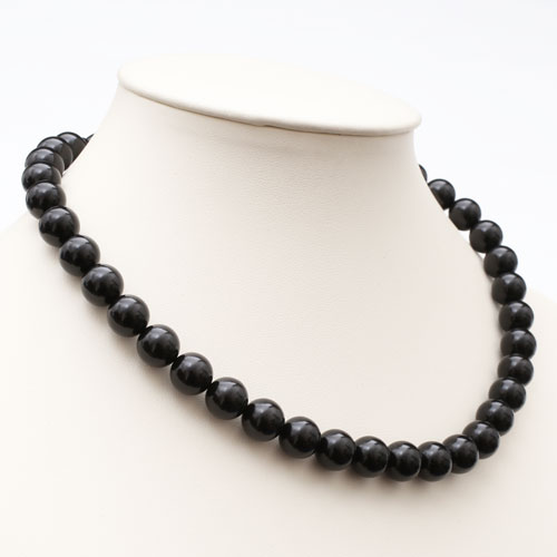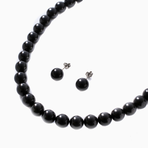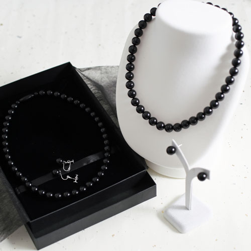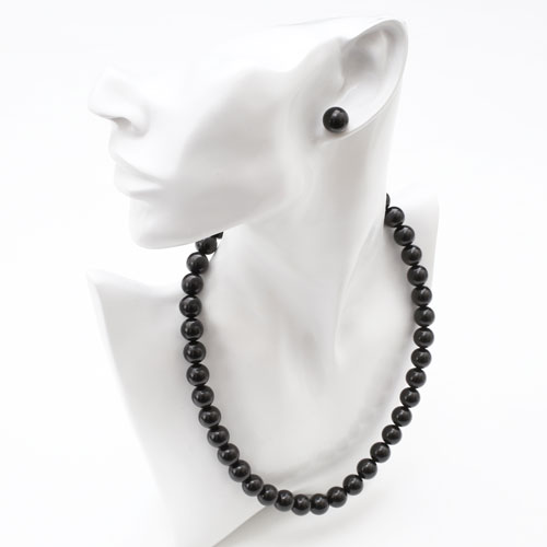 ジェットネックレス ピアスセット 10mm珠 42cm 天然ジェット ラッピング無料