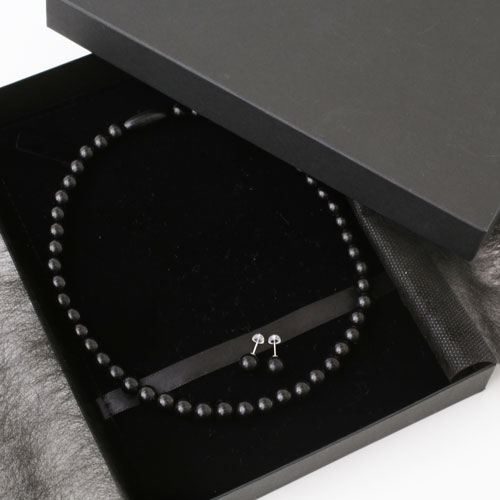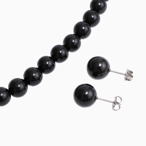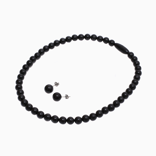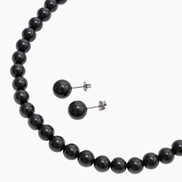 ジェットネックレス ピアス セット 8mm珠 10mm珠 42cm高品質 天然ジェット チタン ラッピング無料