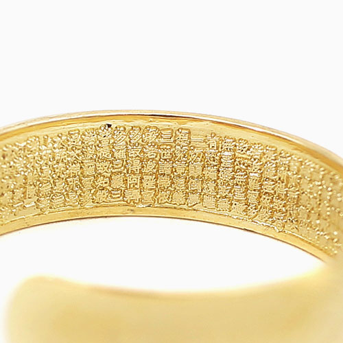 天台宗・真言宗・臨済宗・曹洞宗・浄土宗などで広く読まれるお経の般若心経を18金リングの内側に彫られたフリーサイズリング。拡大鏡で見るとすべての文字が読めるほど正確に彫られています。プレゼントにもお勧めです。型でプレスされた18金の板を熟練職人がリングに仕上げるセミハンドメイド。【ご注意】ご注文をいただいてから、職人が心を込めて板を抜き仕上げますので、在庫有になっておりますがお届けまでに2〜4週間いただいておりますのでご了承下さい。【素材】18金【最大幅】約4.4mm、厚み約0.7mm【総重量】約1.9g フリーサイズ、S(#9〜#12)、M(#13〜#16)、L(#17〜#19)対応 ■日本製