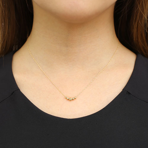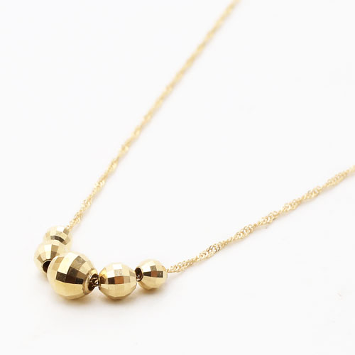 ミラクル(奇蹟)カットを施したミラーボールを5個使ったペンダントは、胸元にまるで球体のダイヤモンドを並べたような美しいキラキラ感が魅力!!センターに3.5mm、両脇に2.5mm、2mmとグラデーションに5個を配してカット面の大きさと角度を微妙に変えて、神秘的な輝きを演出し、存在感をアピールします。チェーンは、人気のスクリューを使用。キラキラと輝くひねりデザインチェーンは、センターとは対照的に控え目な輝きを感じます。【素材】トップ・チェーンともに18金【チェーン】スクリューチェーン、長さ約40cm、留具は引輪式【トップ部の最大幅】約3.5mm【総重量】約0.9g 日本製 ※商品には刻印が施されています。(K18)※プレゼント包装希望の場合はご記入ください。【ご注意】お求めやすい価格を可能にするために、チェーンは細く繊細な