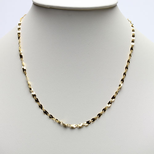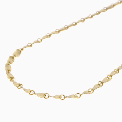 最高級素材である、純金(K24)を惜しみなく使用した、気品あふれる豪華ネックレス。華やか過ぎない、洗練されたデザインのネックレスは、落ち着いた大人の女性にぴったりです。普段の装いをぐっとエレガントに引き立ててくれます。42cmという、ゆとりのあるサイズで、板状のパーツにヒネリを加えた為、キラキラ感は抜群!!純金、品位証明の刻印「K24」が入っており、素材と品質の良さも証明されています。それぞれのパーツが揺れて光を反射し、存在感があり、特別な日の服装やシーンに合わせた使い方ができます。【素材】純金(K24)【サイズ】長さ/約42cm、最大幅/約2.8mm【重さ】約3.1g 【留具】引輪式 【仕様】K24 刻印入 【ご注意】高純度製品はK18などに比べ柔らかく繊細な為、無理に引っ張ったり重いものを上に載せたりしないでください。