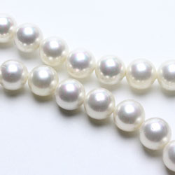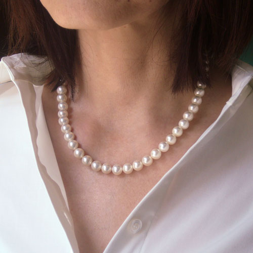 8mm珠のシェルパールは、見た目にも程よい大きさで、着ければ上品で落ち着いた印象!!最高級の輝きが、首元をぱっと明るく、大人の華やかさを演出してくれます。当店のみがき貝シェルパールは、熟練職人が何層にもコーティングした厚巻きで、珠のつなぎは本真珠ネックレスと同じ本結び(引き戻し加工)を施し、しなやかさを実現しています。本真珠に比べ汗や化粧品に強くお手入れも簡単、この価格からは考えられない品質と満足感を。こだわりの、シンプルなシェルパールのネックレスは、年齢やファッションに左右される事がないベーシックで一本は持ちたいアイテム。きっと、長く、大事にお使い頂けますよ。プレゼントにも最適です!!【素材】●みがき貝パール(人工真珠厚巻コーティング仕上げ) ●留具/真ちゅう(ロジウム仕上げ)