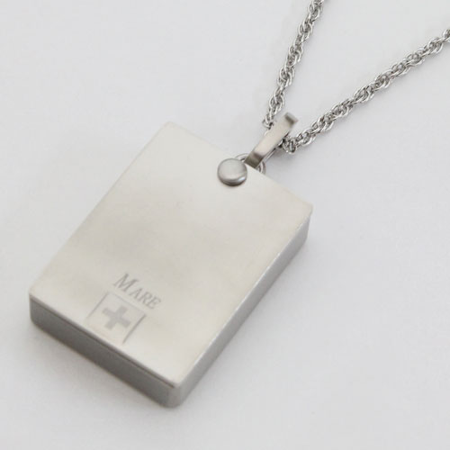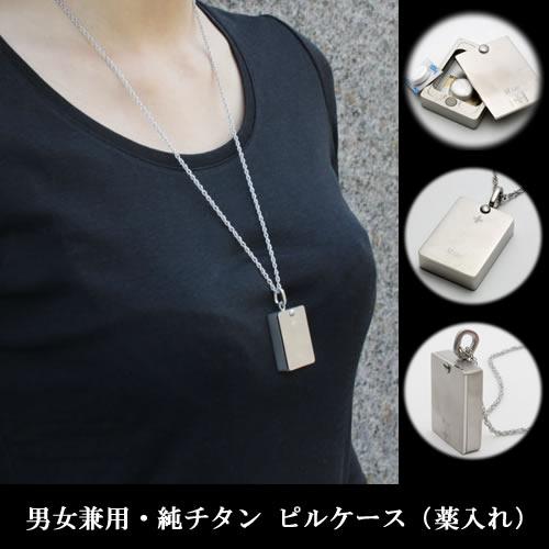 チタンはアルミニウムと同程度に軽く丈夫でさびにくく金属アレルギーをほとんど起こすことがなく紫外線に当たると表面に活性酸素ができて細菌を死滅させてしまう効果があると言われています。そのチタンにイオンプレートを施したピルケース。肌の敏感な方や金属アレルギーが心配の方にも安心。(チェーンはチタンではありませんので別売りのプラチナなどのチェーンをお勧めします。)大事な薬や写真、秘密の小物も入りマグネットでしっかりとふたが閉まりますので安心。