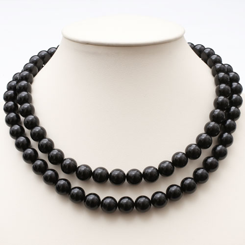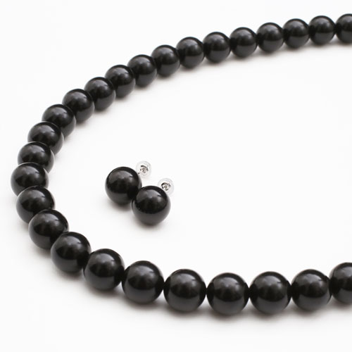 グレードアップ【こだわりの逸品】 10mm珠 45cm 天然ジェット ネックレス&ピアスセット