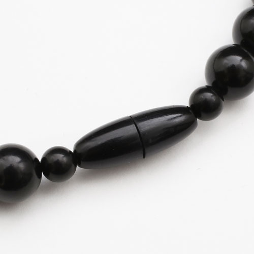 格調高い、良質な天然ジェットのネックレス&ピアスを、今回期間限定価格据え置きで大幅にバージョンアップしました。漆黒のネックレスの色合いを損なわないように従来使用していたワイヤーを黒色の糸に変更、また、シルバー色のばらデザイン留具を一体感の出る黒色の牛の角で作ったスリムなねじ込み式にしました。まさにこだわりの逸品です。価格も楽天市場の中でどこよりもお安い驚きの安さでの大ご奉仕です。●天然ジェット(約10mm球)●ネックレス/長さ約45cm、重さ約30g、留具=ねじ込式(牛の角)●ピアス/重さ約0.8g(片方)、留具=キャッチ式(チタン)●日本製※天然素材のため表面に凸凹が見られる場合がありますがキズではありません。ご了承ください。