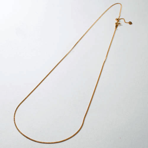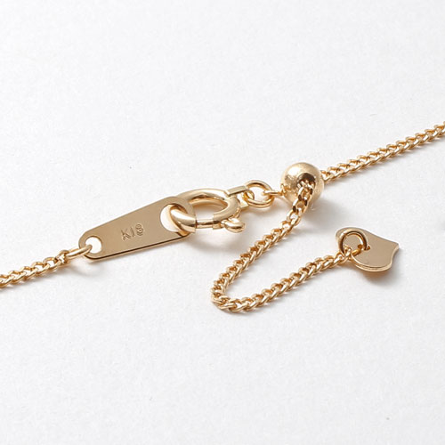 とっても便利なフリーアジャスター付きで、45cmまでのお好みの長さに簡単に調節して頂けます。いつも、その日のお洋服に合ったぴったりの長さでお使い頂けるすぐれもの!そのままネックレスとしても、お手持ちのペンダントトップを通していただいても。●18金●チェーンの長さ約50cm(アジャスターで50cm以下にフリーサイズ調節可)、留具は引輪式●最大幅約0.8mm●総重量約2g●日本製(K18刻印入)