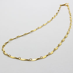 純金のパーツを組上げたセミハンドメイドで、胸元の華やかさも倍増します。 最高級素材・24金のみでお作りしたセミハンドネックレスは、どんなスタイルにも合わせやすく、普段の装いをぐっとエレガントに引き立ててくれます。【素材】純金(K24)【サイズ】長さ/約42.5cm、最大幅/約2.5mm 【重さ】約3g 【留具】引輪式 【仕様】K24 刻印入