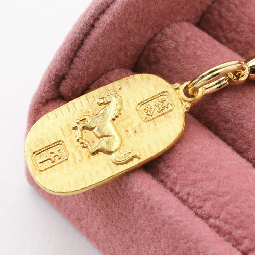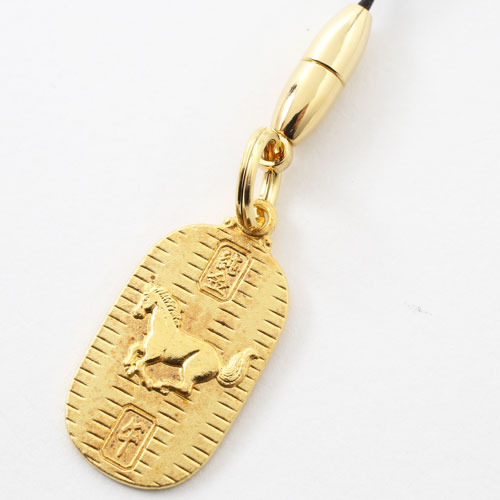 開運・招福 純金製3g・干支(午)小判ストラップ(K24)