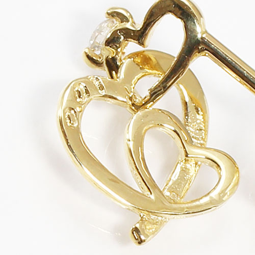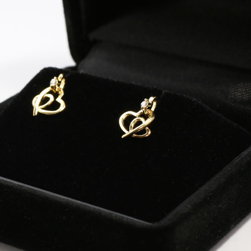 専門教育を受けたジュエリーデザイナーが創りだすによる感性豊かなデザイン★送料無料・消費税込★大小のオープンハートにダイヤモンドのアクセントを加えたさりげなくキュートな18金の本物ピアスです。ハートのモチーフは派手すぎず、合わせる洋服によってキュートな感じにもシックでクラシカルな雰囲気にもなります。落ちついたゴールドカラーは高級感があり、幅広い年齢層に受け入れられており、いつまでも飽きずにお使いいただけます。オープンハートが動くたびに耳元でキュートに揺れ、ダイヤモンドがキラリとさりげなく輝きます。大切な人へのプレゼントにも喜んでいただける逸品です。●18金、ダイヤモンド(約0.01ct.)●留具はキャッチ式●ハート部分の大きさ約7×7mm ●総重量約0.3g×2 ●日本製