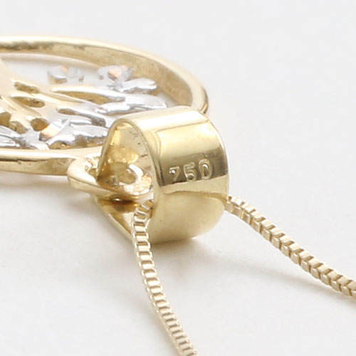 高級素材・18金を贅沢に使用した、シンプルなスペイン製サークルツリーペンダント。シンプルなデザインだからこそ、18金本来の高級感あふれる光沢が際立ちます。【素材】トップ(18金)、チェーン(SV925)【チェーン】カットボールチェーン、長さ約42cm(約5cm部分にアジャスター有り)、留具は引輪式【トップの大きさ】約縦14×横12mm(バチカン込約18mm)、トップの厚み約0.5mm、【総重量】約1.3g(トップのみ約0.7g) ※(750)の刻印 ※トップ部分は非常に小さく刻印が綺麗に入らない場合がございます。予めご了承ください。■トップのみスペイン製、チェーンのみイタリア製