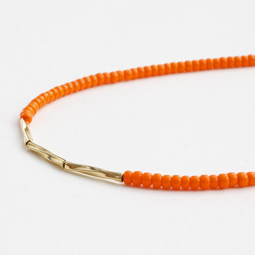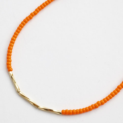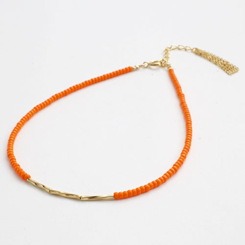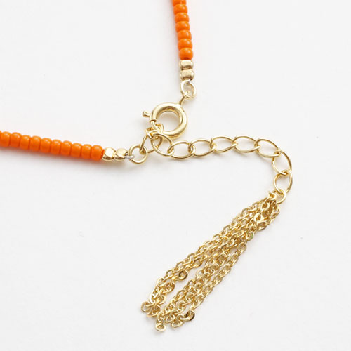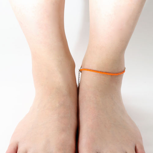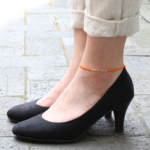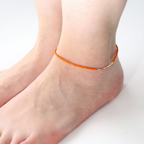 【日本製】 真鍮 ガラスビーズ/オレンジ アンクレット/足首 チェーン
