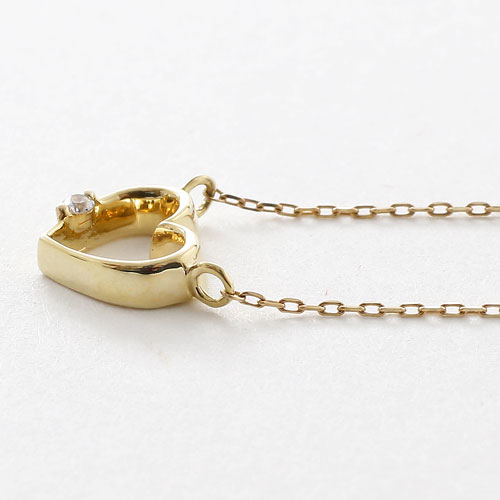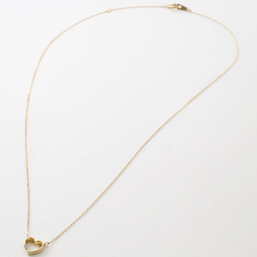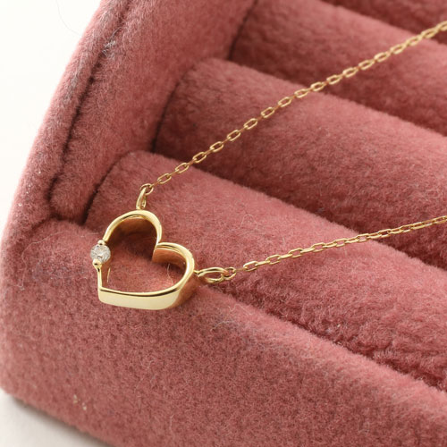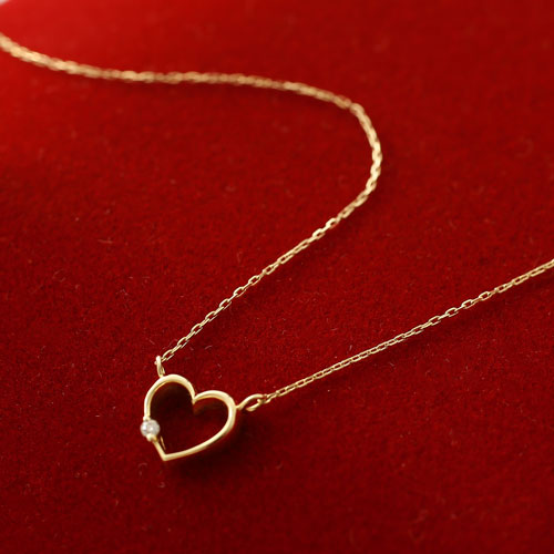 10金 K10YG オープンハート ダイヤ イエローゴールド ネックレス 小豆チェーン ペンダント