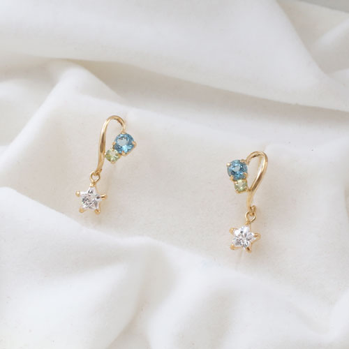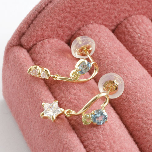10金 イエローゴールド スターモチーフ ピアス 天然石 ブルートパーズ 星 スター クリックポスト便対応