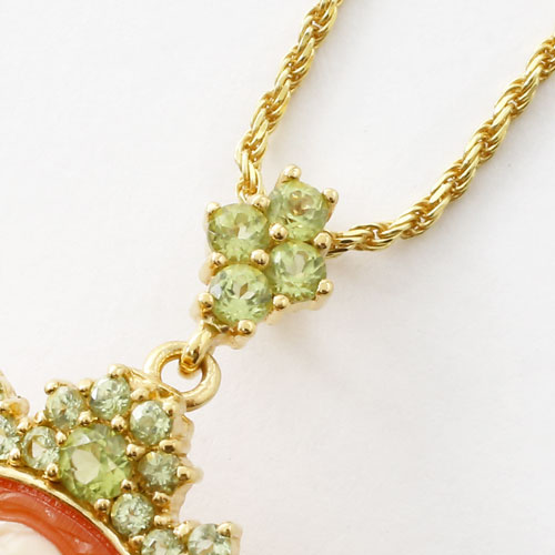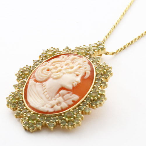 PRANDA【プランダ社】 イタリア製・手彫りシェルカメオ・天然 ペリドット取巻き ペンダント ブローチ
