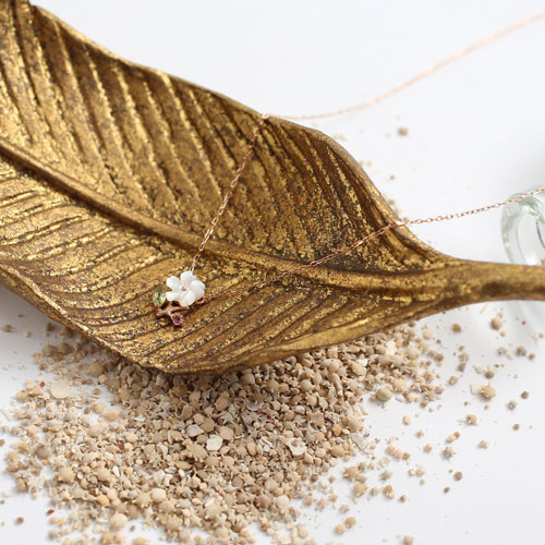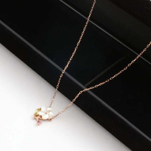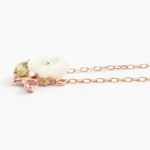 【素材】10金(K10PG)ピンクゴールド、ペリドット、ピクトルマリン、シェル、小豆チェーン【サイズ】トップの大きさ:縦横約8.0mm×8.0mm、チェーンの長さ約40cm(引き輪より約3cm部