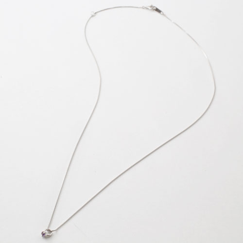 【素材】10金(K10WG)ホワイトゴールド、ベネチアンチェーン、アメジスト【サイズ】トップの大きさ:縦横約0.4cm×0.3cm、チェーンの長