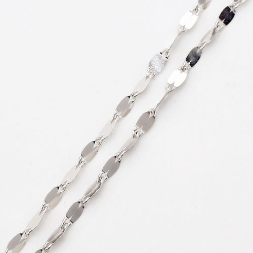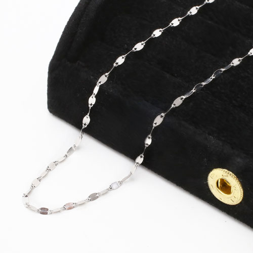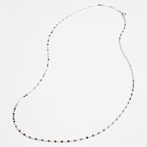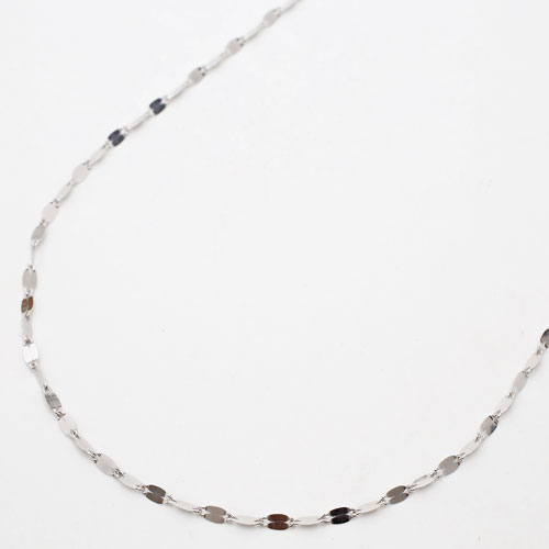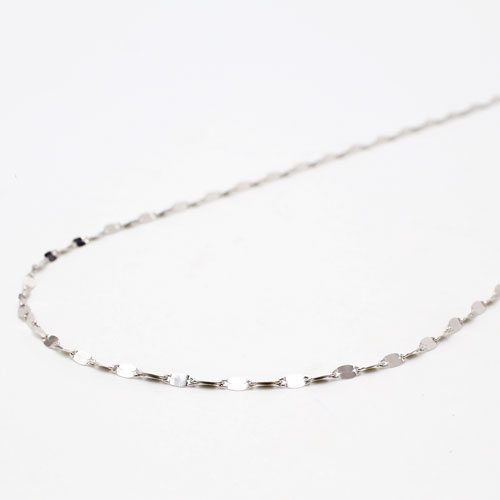 高級素材である、18金ホワイトゴールド(K18WG)を惜しみなく使用した、気品あふれるネックレス。華やか過ぎない、洗練されたデザインのネックレスは、落ち着いた大人の女性にぴったりです。普段の装いをぐっとエレガントに引き立ててくれます。【素材】K18WG【サイズ】長さ/約50cm、最大幅/約1.8mm【重さ】約1.5g 【留具】引輪式 【仕様】「K18」刻印入