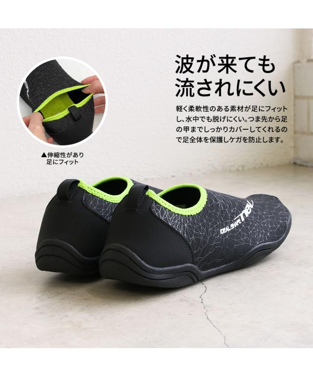 ビーチサンダルとは違い、しっかりと足を覆っているため、波が来ても流されにくい、フィット感のある履き心地です。