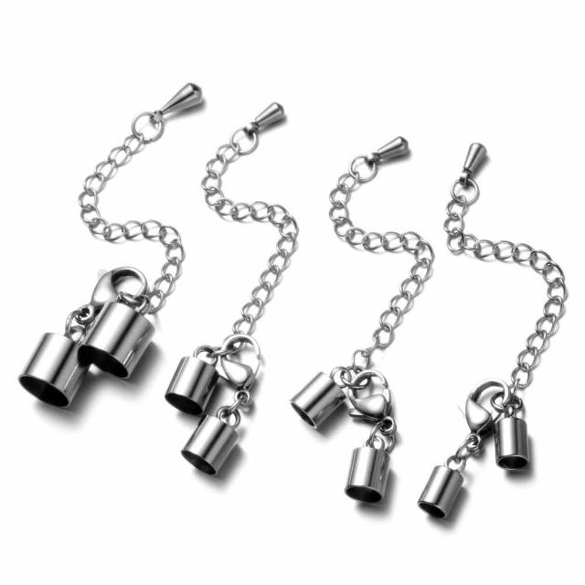太さが4mmと5mmと6mmと8mmの丸い革紐用のカニカンと止具とアジャスターチャームをセットにしたサージカルステンレス316L製の止具です。ワイヤーロープや丸型皮ひもやテグス用のブレスレットやネックレス用のカニ冠止具エンドパーツ。サージカルステンレス316L製なので錆びにくく、高級感もある。接着剤を流し込んで皮ひもをくっつければネックレスの止めが簡単にできる。ブレスレットの修理や手作りのアンクレットなど留め具など、色々な修理DIYパーツに使える留めパーツです。