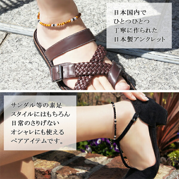 それぞれ天然石とデザインパーツをバランスよく配置した、日本製ペアアンクレットです。