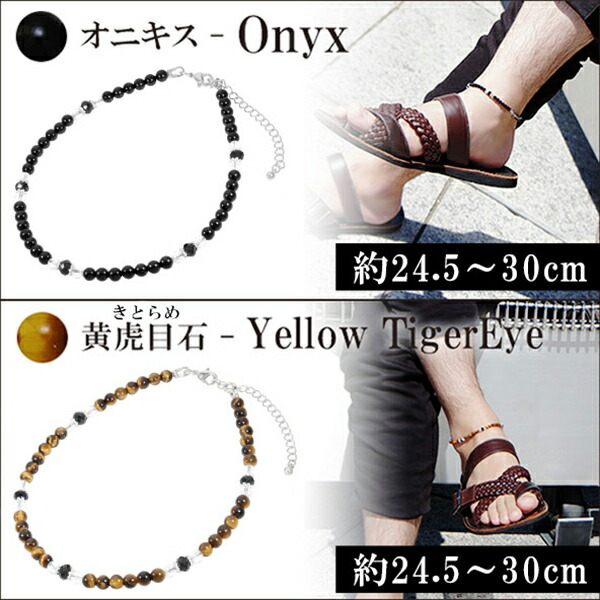 選べる8種 天然石 ペアアンクレット 約22〜30cm 調整可 メンズ レディース 日本製 オニキス タイガーアイ ペア カップル パワーストーン