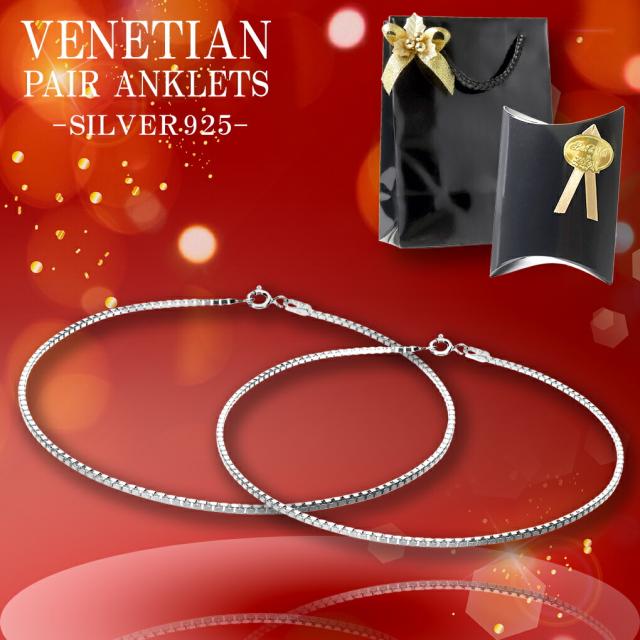 ベネチアンチェーン シルバー ペアアンクレット メンズ レディース ペア アンクレット カップル 足首 シルバー925 2本セット