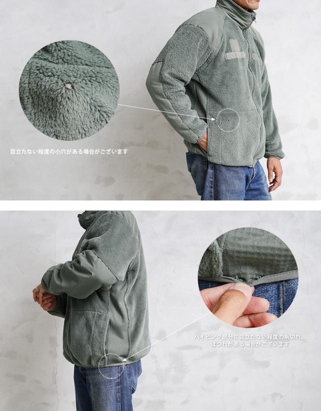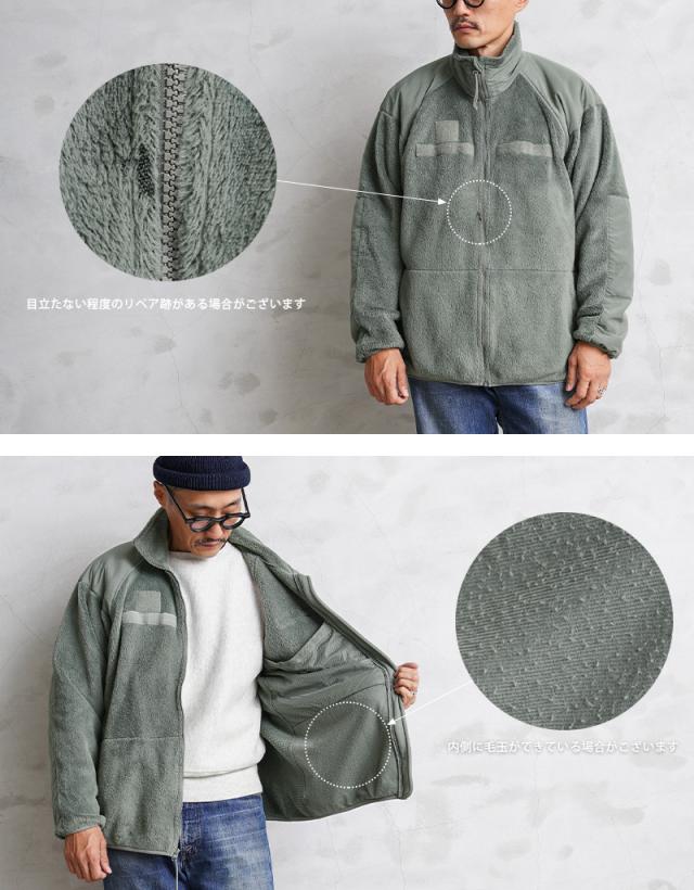 | 商品状態 | 軍放出のUSED ※USED商品のため若干の汚れ、目立たない程度の小穴・リペア痕・パイピング部分に糸切れやほつれ、着用時には見えない内側襟元などにマジックでのマーキング、内側に毛玉、経年や使用による毛質の変化や縮みによる若干の寸法の誤差などがある場合がございます。いずれもさほど目立たず、着用にもまったく支障はございませんが、状態に関しましてはお選びいただくことはできません。予めご了承下さい。 ※POLARTEC(ポーラテック)のタグが裏向きにつけてあったり、欠損している場合がございます。タグのデザインも異なる場合もございます。また、コントラクトタグ(サイズタグ)の欠損、マーキングまたは多少の損傷がある場合がございます。予めご了承ください。 ※商品によってジッパープルのコード(紐)がない場合がございます。ご指定を承ることはできませんので、予めご了承下さい。 |