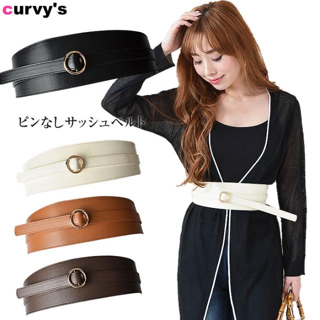 サッシュベルト ゆうメール便送料無料 サッシュベルト レディース カジュアル サッシュ ベルト 合皮 フェイクレザー ピンなしサッシュベルト