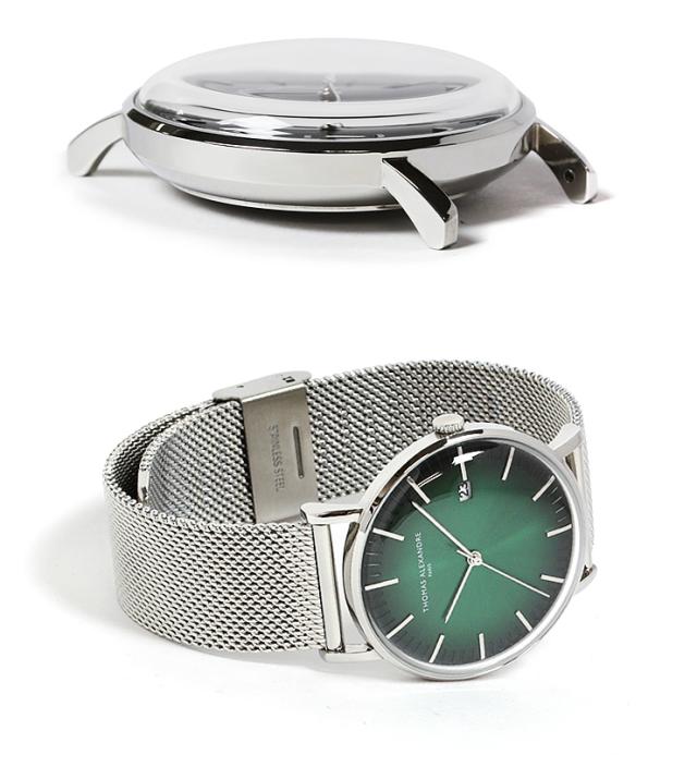 深みのある光沢が美しいグリーンカラーのダイアル。