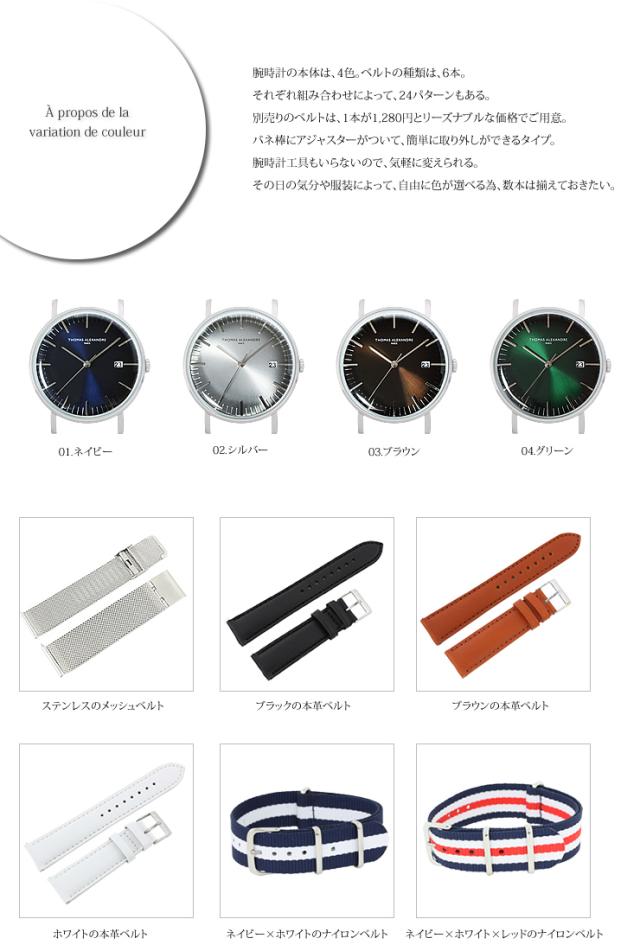 腕時計の本体は、4色。ベルトの種類は、6本。