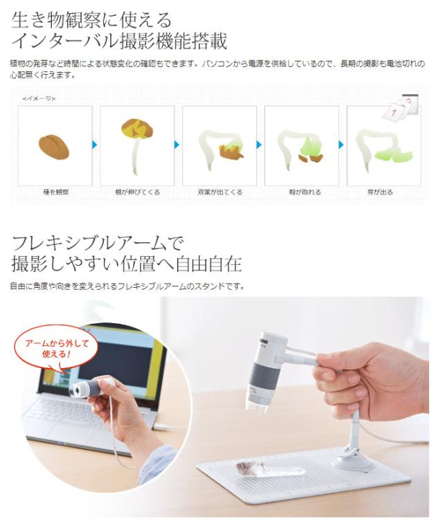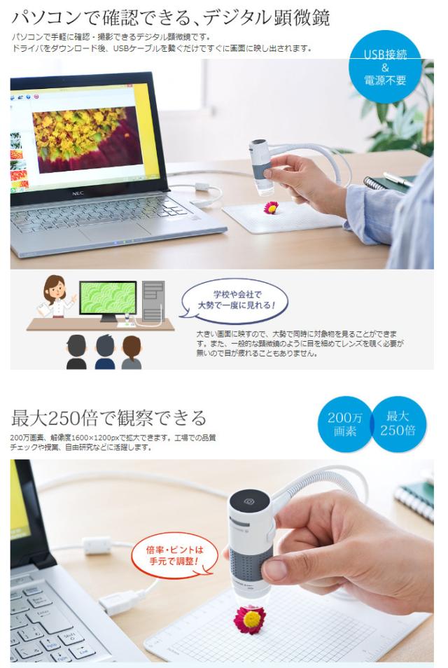 顕微鏡 USB パソコン接続 光学倍率250倍 LEDライトUSB接続 夏休み 自由研究 簡単 手軽 サンワサプライ SANWA SUPPLY