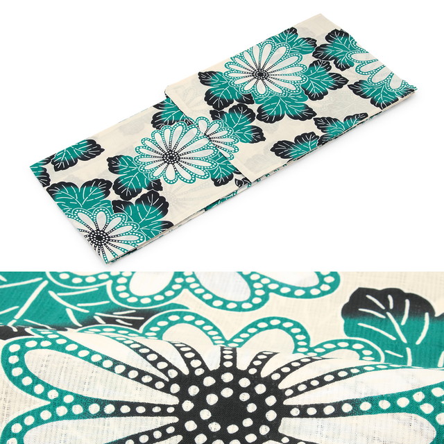 浴衣 アイボリー地に青緑色など