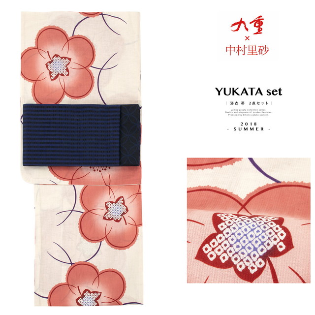 浴衣セット レディース レトロ 浴衣セット 大人 2点セット 白系 アイボリー ピンク 赤 紺色 梅 花 綿麻 女性 九重×中村里砂 フリー