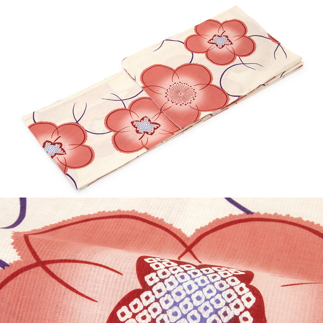 浴衣 アイボリー地にピンクなど