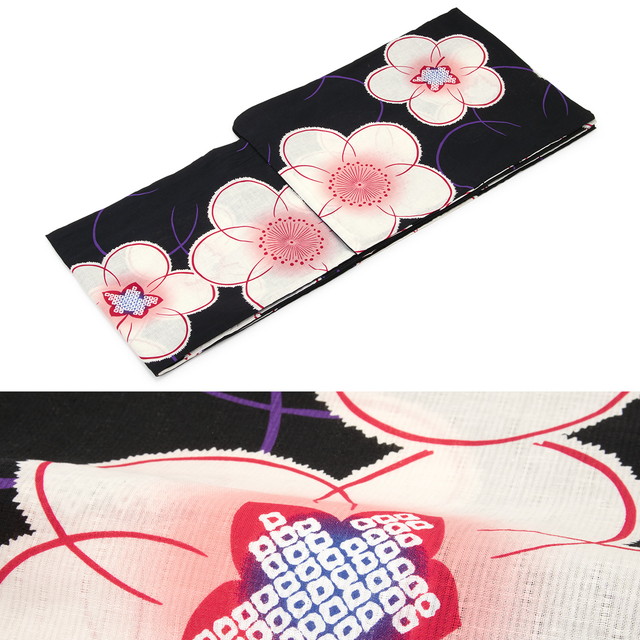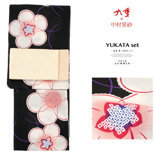 浴衣セット レディース レトロ 浴衣セット 大人 2点セット 黒 ブラック ピンク アイボリー 梅 花 綿麻 女性 九重×中村里砂 フリー