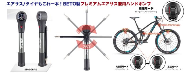 そんな押し担ぎが好きな方にお勧めしたいのがサスペンション用ポンプと自転車空気入れが一体化になった「エアサス兼用ミニポンプ」SP-006AG です。