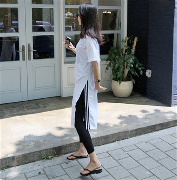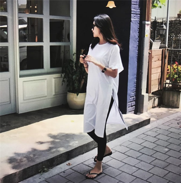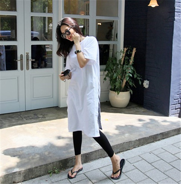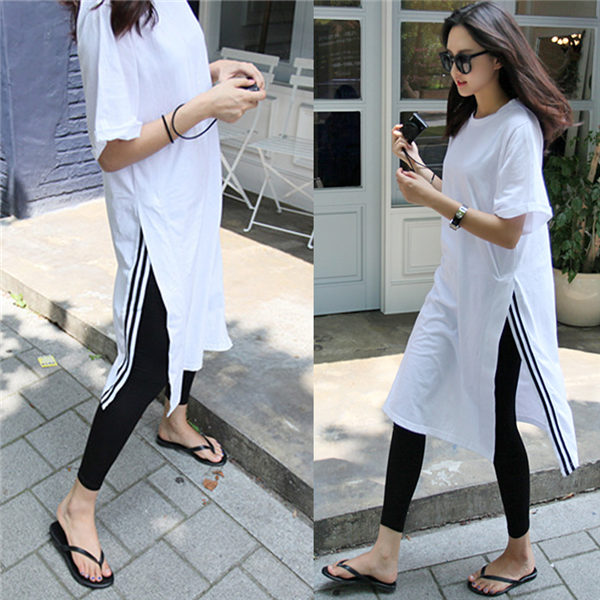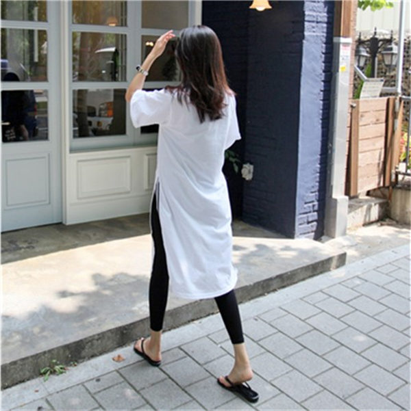 メ便送料無料 半袖ロンt レディース ロングtシャツ ゆったり ドロップショルダー サイドスリット おしゃれ ティーシャツ